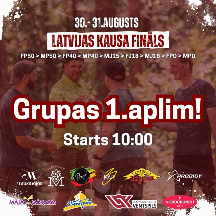 Latvijas Kausa finÄlposma 1. dienas grupas un starta laiki ir publicÄti! Laiks iepazÄ«t savus biedrus, sagatavot diskus un noskaÅoties pirmajam aplim VentspilÄ«! š„