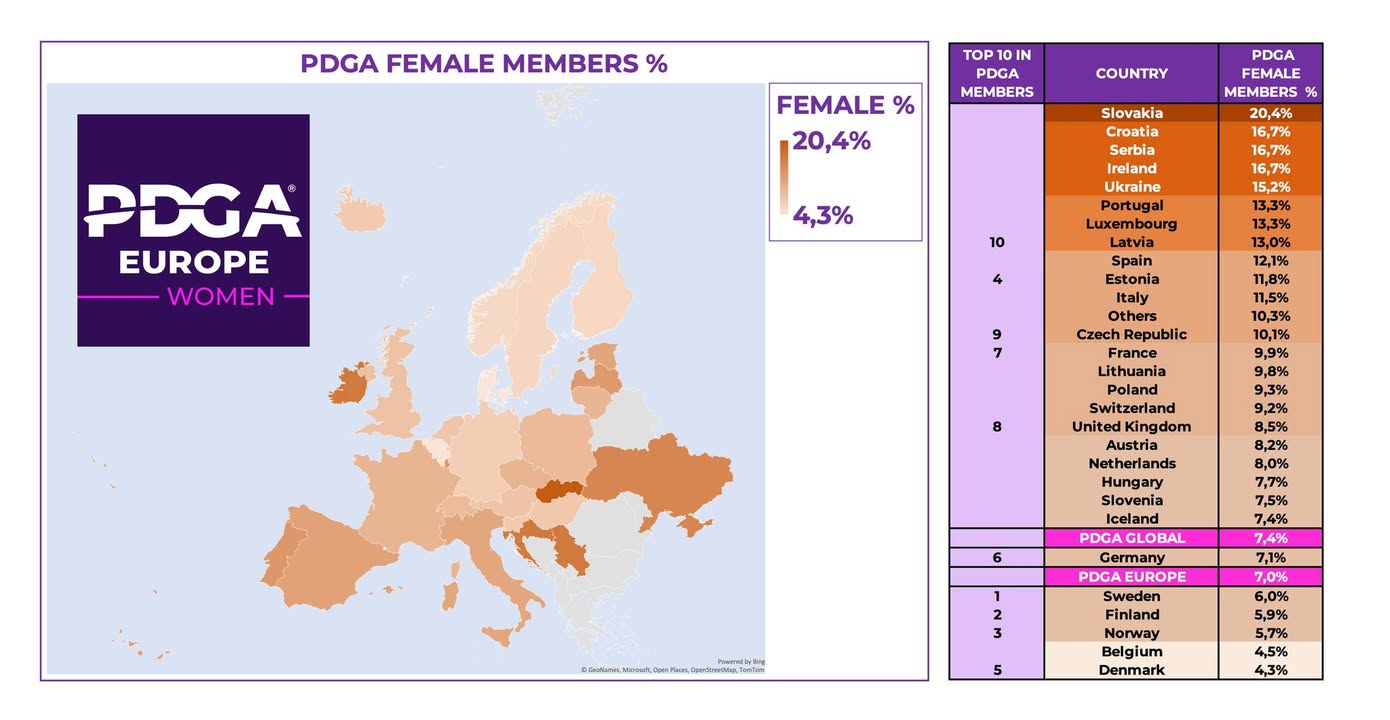 To continue promoting women's disc golf, we need to know what European countries with the highest percentage of women among their Professional Disc Golf Association members are doing differently. Can you guess who tops this ranking?