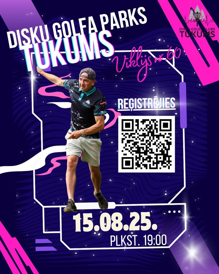 Tiekamies, 15.08.2025. Plkst.19:00 (reÄ£istrÄcija lÄ«dz plkst.18:00) Tukuma disku golfa parkÄš¤©.