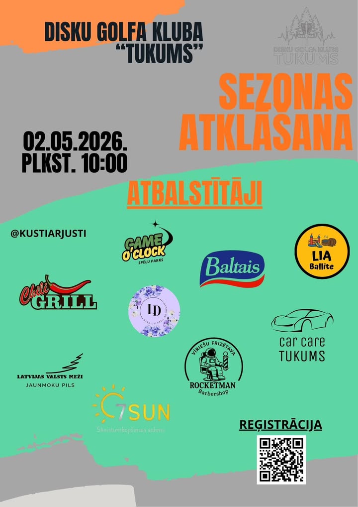līdz TUKUMA DISKU GOLFA KLUBA ATKLĀŠANAS PASĀKUMAM, jau 2.maijā plkst. 10:00 🔥